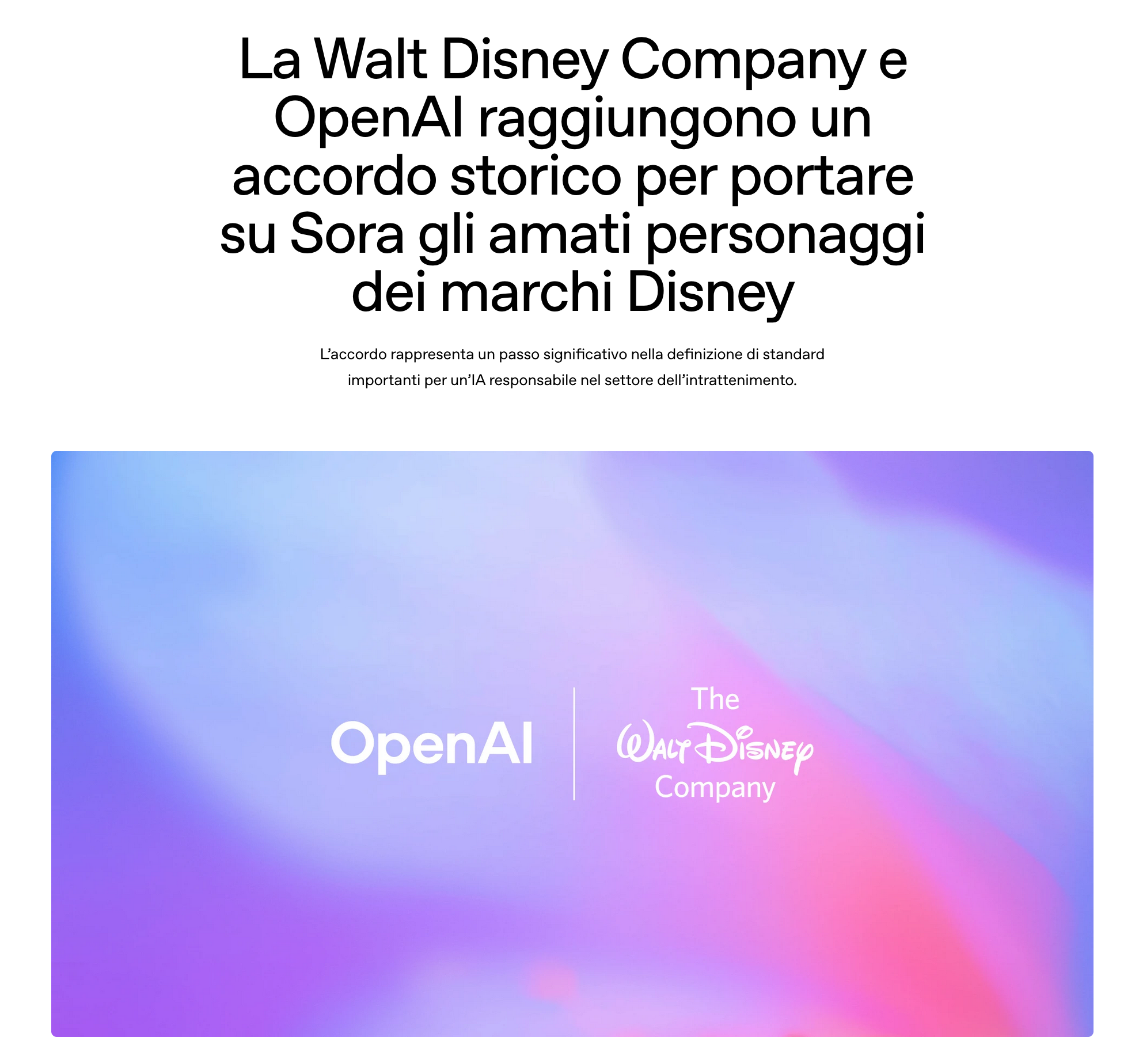 L'accordo di $1 miliardo tra OpenAI e Disney che ha tagliato fuori Google. E due anticipazioni sul progetto oradecima 👀